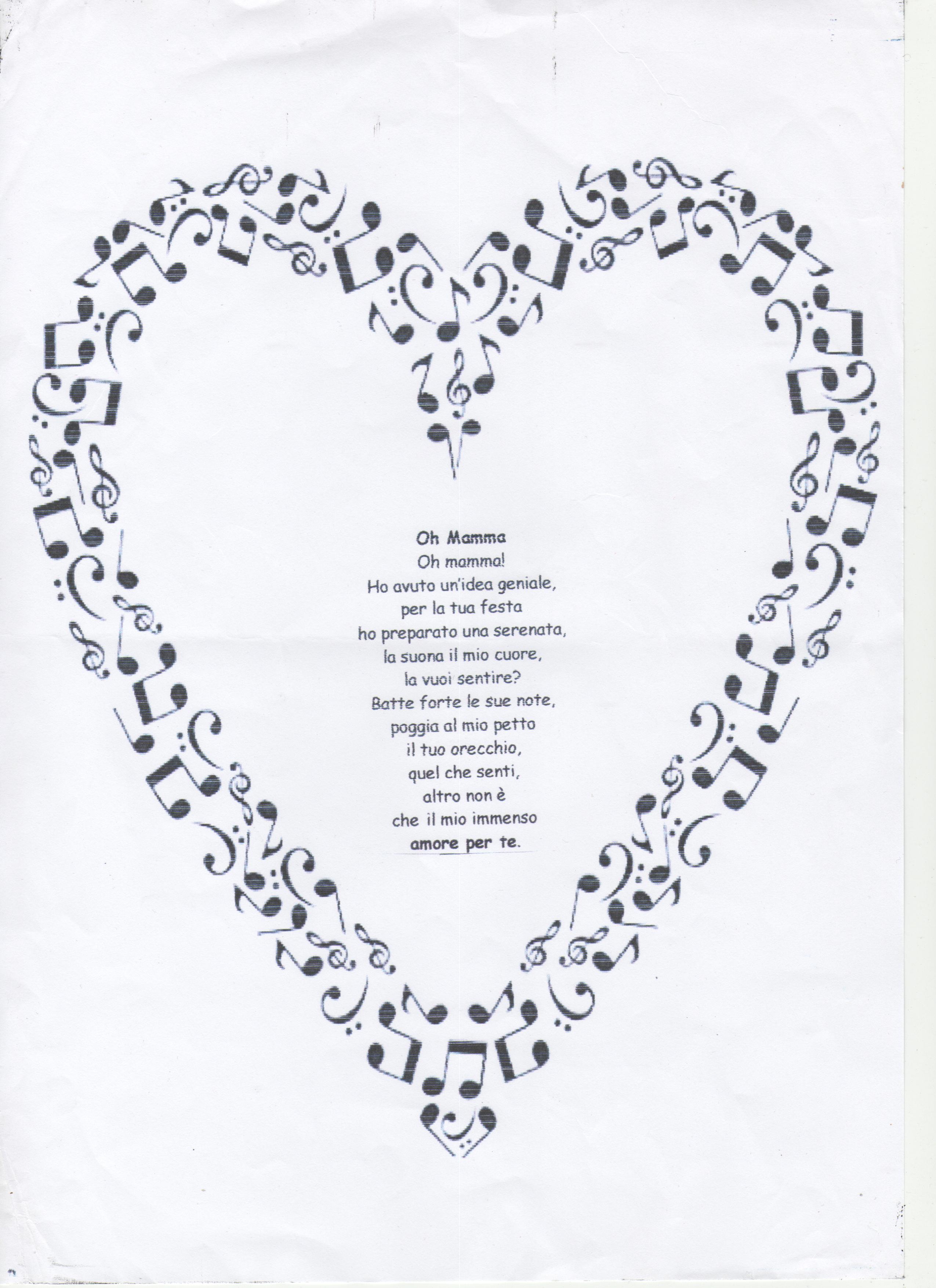 Potete decorare il cuore con la poesia, che troverete in allegato, con quello che vi suggerisce la fantasia, fiori, cuori, note musicali ecc....